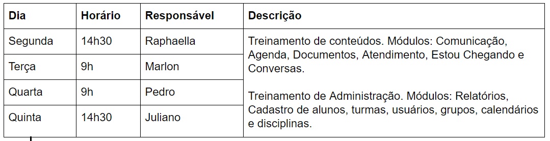 Sua escola pode também, sem nenhum custo adicional, fazer treinamentos online para aprimorar o uso do app. Agende aqui nesta página →